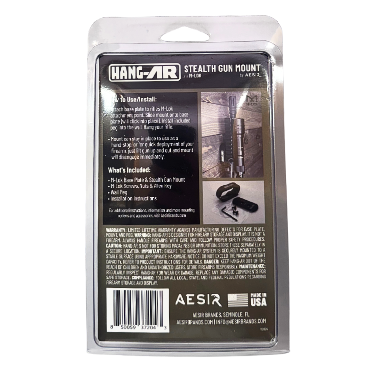 - Versatile Compatibility: With options available for AR-15 and AR-10, M-Lok systems and multiple mounting surfaces, the Hang-AR lets you showcase your arsenal anywhere.